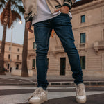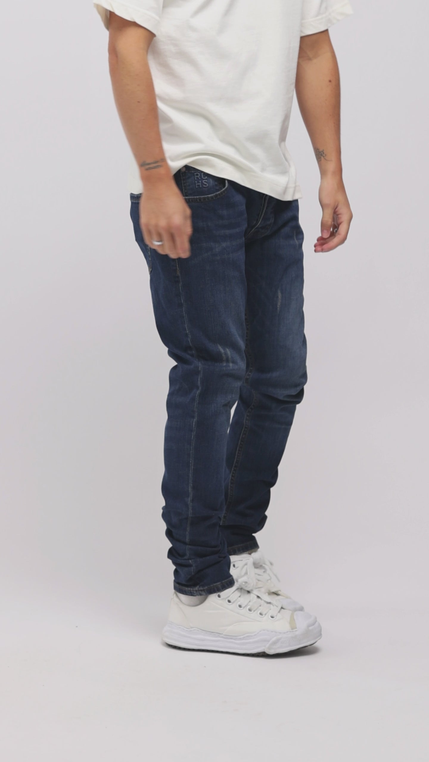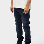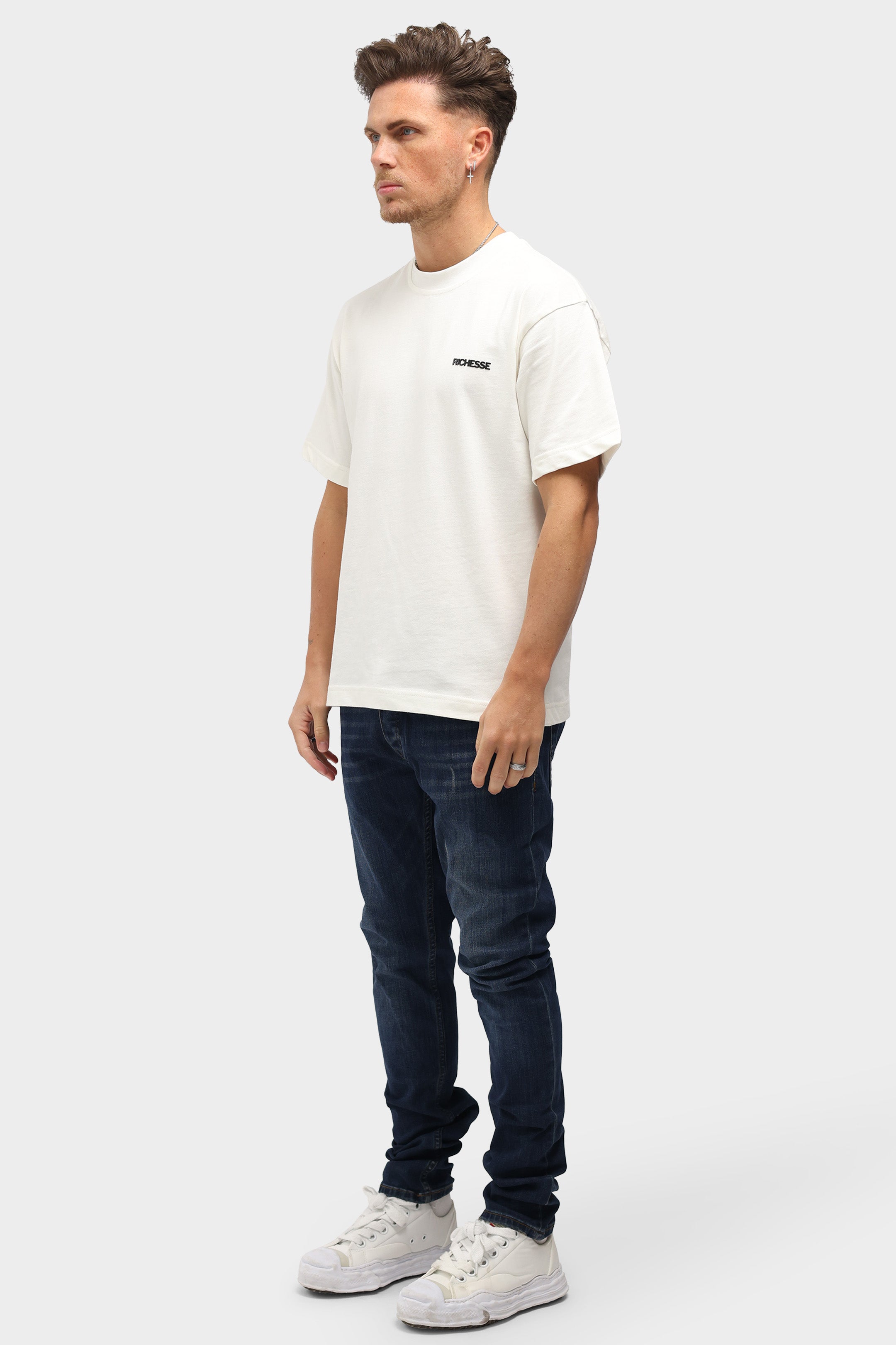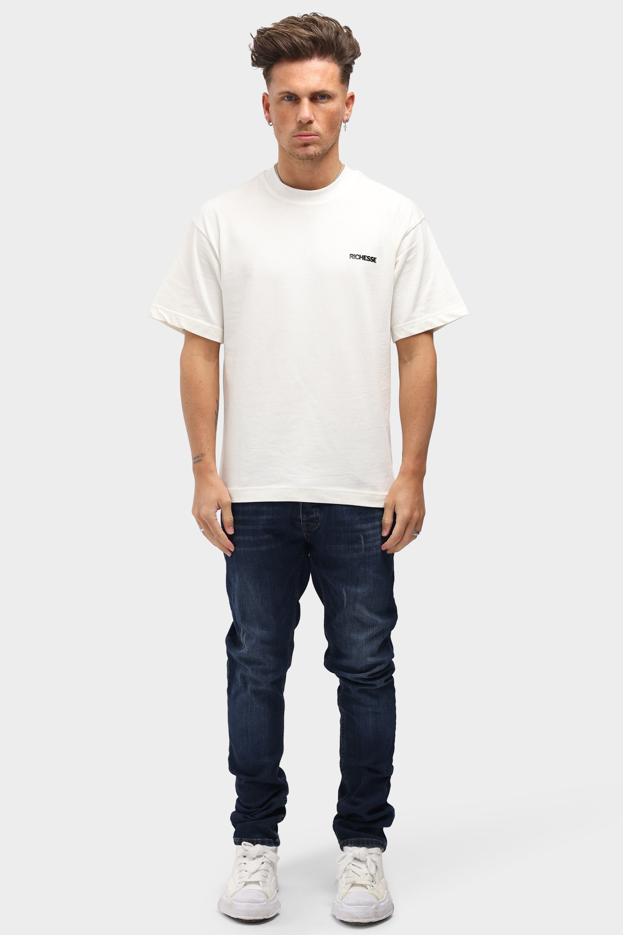 The new jeans from Richesse have been worked out in every detail. The Richesse brand label is boldly detailed on the front and back pocket in the new collection. The jeans have a metal logo on the front that immediately makes you stand out. There is a light wash with tears on the jeans, which are of course well covered by an extra layer behind the tear. Combine this item with a cool hoodie from Richesse.
